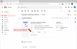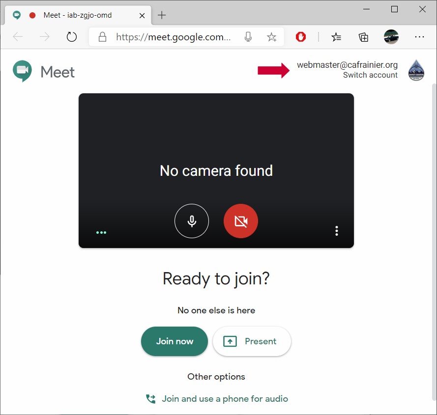 At least one person must join while signed in to their CAF Rainier account to open the meeting (unit staff and authorized members). If you are not signed in with a CAF Rainier account, someone who is will have to let you in manually.