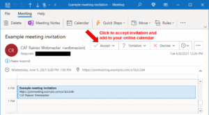 A meeting invitation will come as an e-mail with an option to accept the meeting and add it to your online calendar (Google, Hotmail/Outlook, Apple, etc.). Accepting the meeting usually deletes the e-mail.